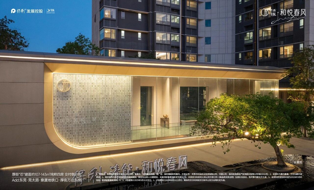 清能集团与保利集团联袂匠筑,项目占地约2.1万㎡,涵盖4栋住宅与1栋商业。主打107-143㎡四房户型,承袭保利“和悦系”产品理念,定位舒适、温暖、智慧的改善型住区。项目地处粤港澳大湾区东莞厚街会展板块核心,毗邻莞太路、北环路等主干道,距寮厦站约600米,交通便捷。多座大型商业环伺,氛围成熟,生活便利。教育资源涵盖厚街小学、厚街实验学校等全龄阶段,文化公园、福神岗公园等生态景观环布,自然与繁华兼得。