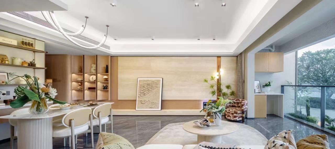 本项目位于广州市天河区广汕二路以南,旧羊山以北,包括示范区范围内的所有室内精装修工程,含售楼部、示范区范围内公共区域及样板房、样板公共区域、营销办公室、下沉庭院两侧办公室、1#楼公区地下室大堂等室内硬装修、水电安装、弱电、智能家居、消防、空调、新风等工程项目。