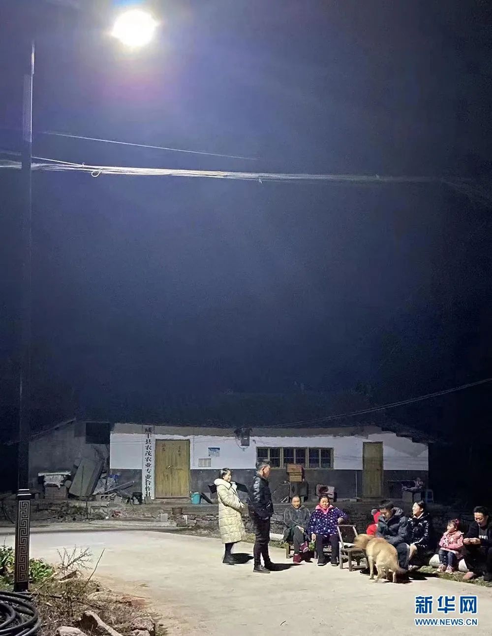 五龙坪村村民在明亮的路灯下相聚。新华网发