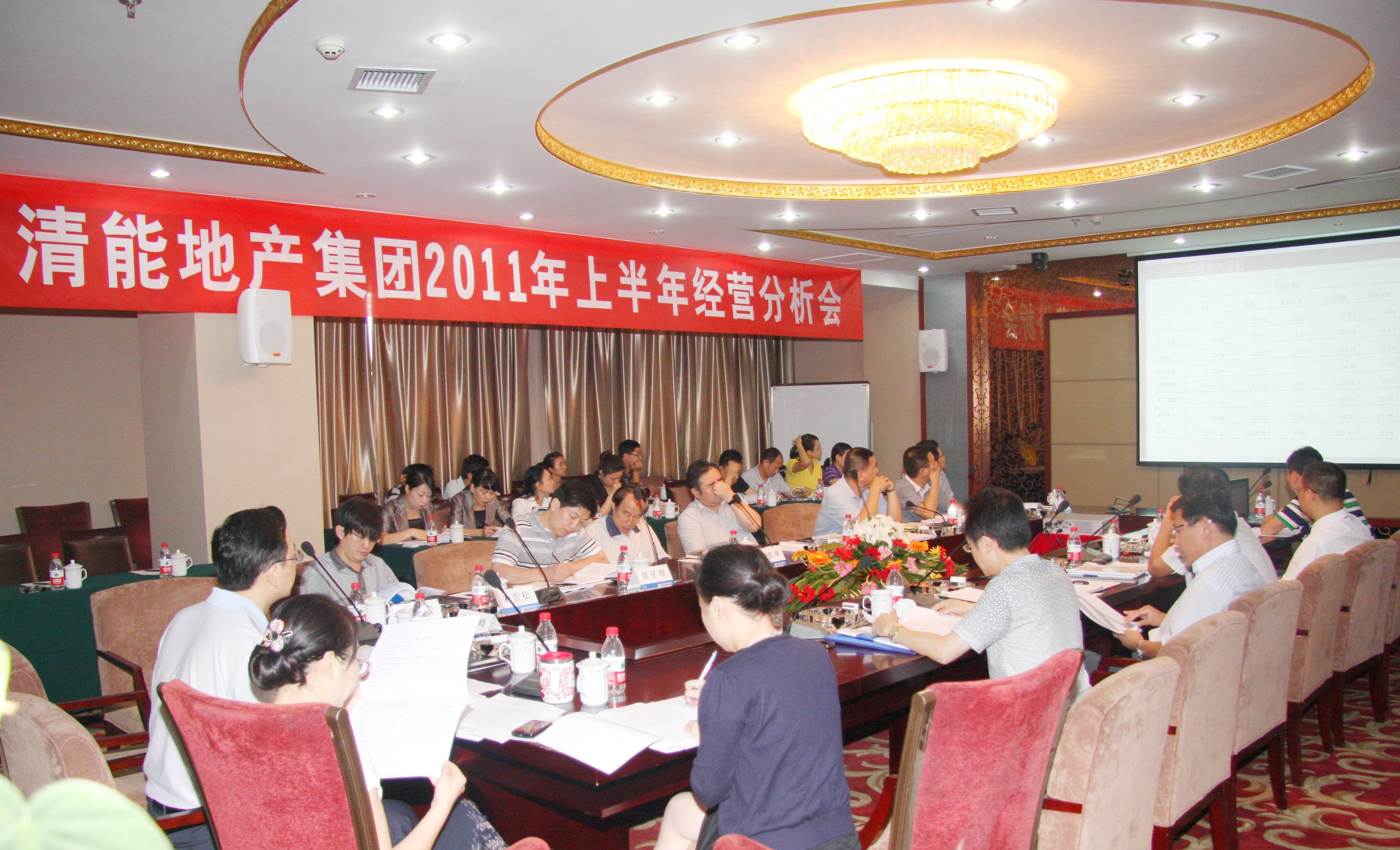 2011年7月21日,清能地产集团总经理朱万奎在清江饭店八楼黄鹤厅主持召开2011年上半年酒店板块经营分析会,集团公司领导、酒店公司会议代表、集团公司机关部门负责人共40余人出席了会议。会议听取了各酒店公司关于上半年经营状况、全年经营指标预测情况以及酒店上半年经营中存在的问题和下半年各项工作安排的汇报。集团公司充分肯定了各单位上半年取得的成绩,要求各酒店进一步提高精细化管理水平,充分利用现有资源,降低成本、增加收入,提高经营业绩,促进集团公司稳健发展。