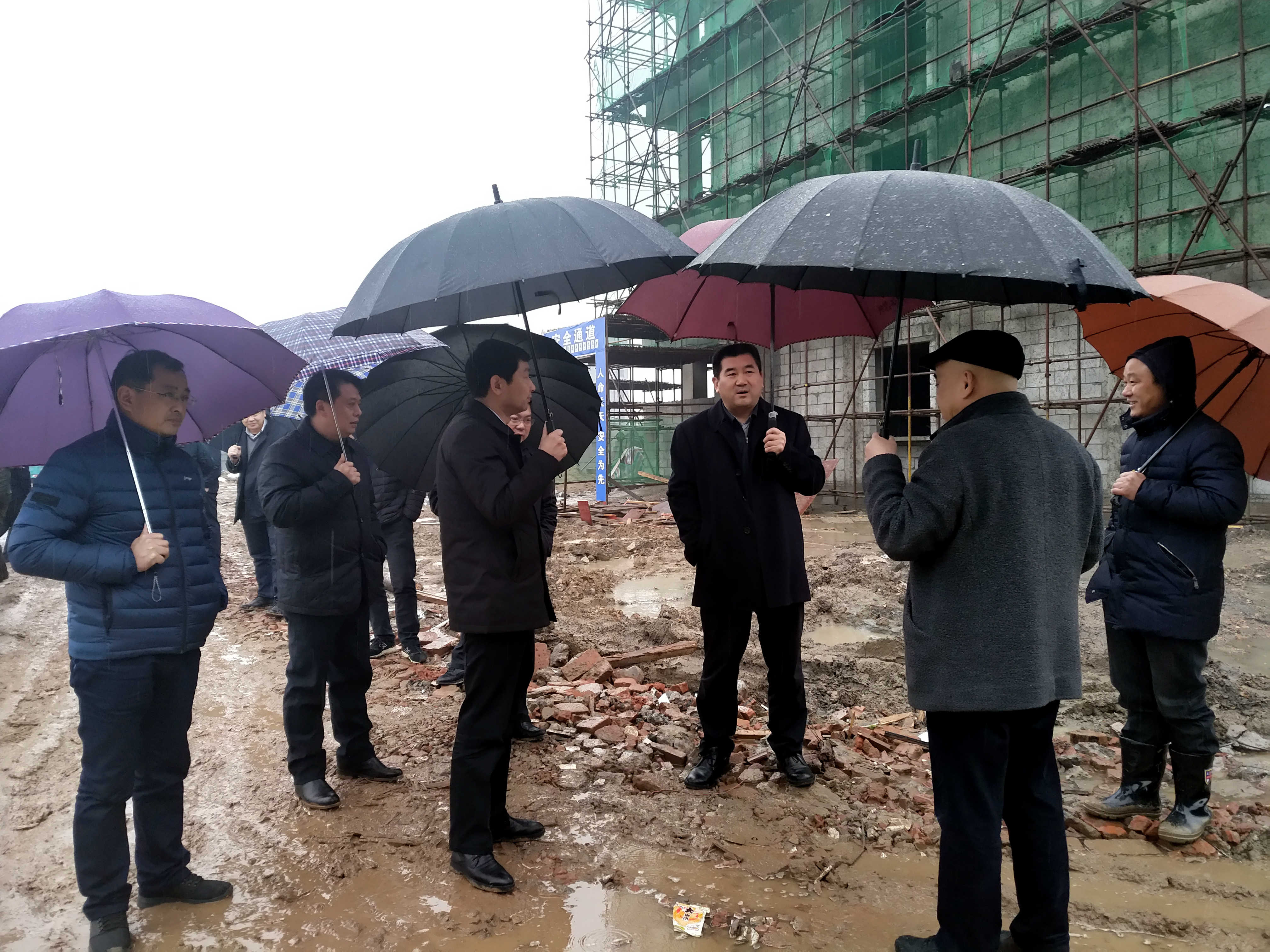 图一:朱万奎同志一行实地察看康宏生态小龙虾加工项目建设现场