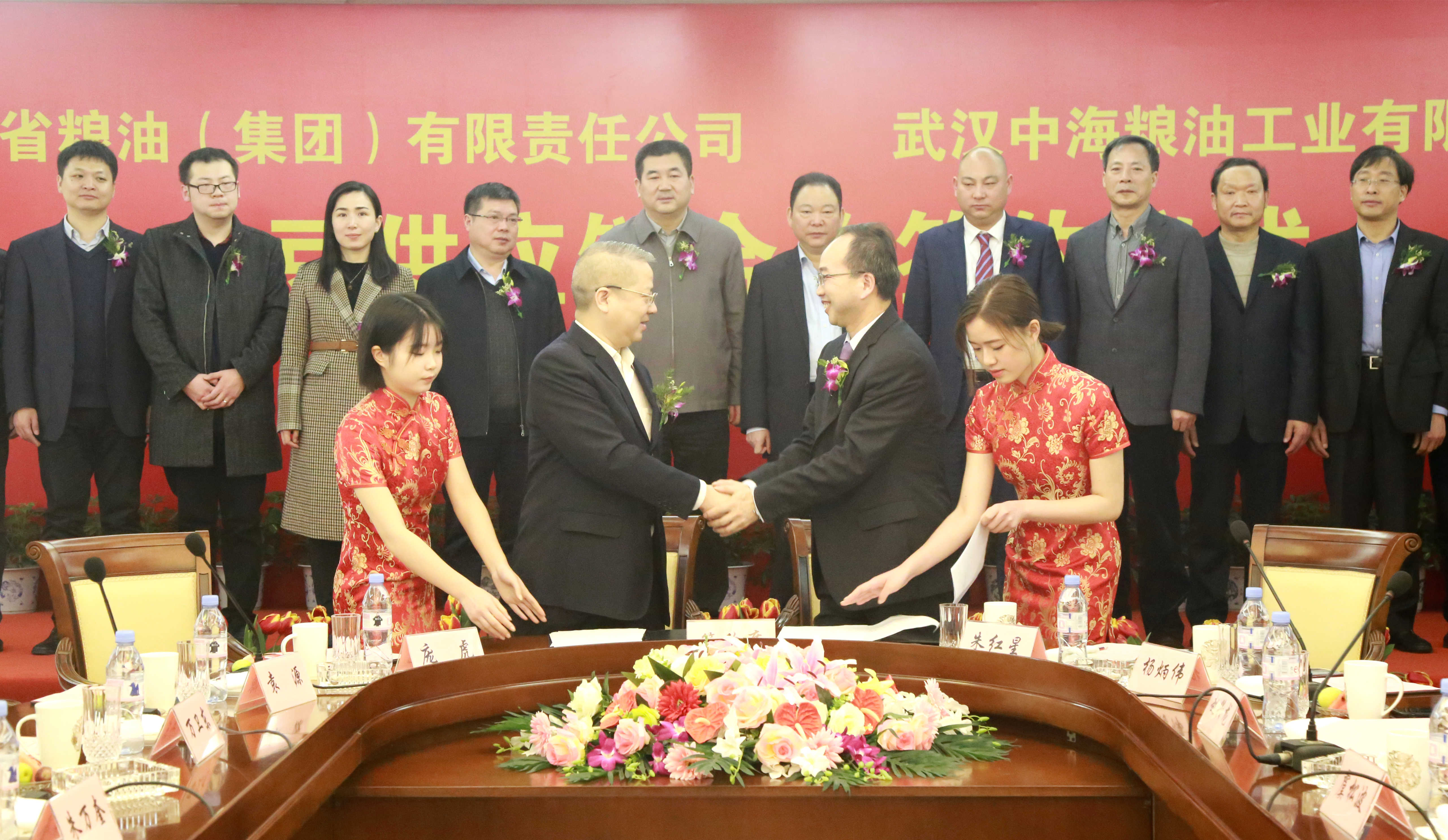 3月7日,湖北粮油(集团)大豆供应链合作签约仪式在浙江省舟山市和润集团总部举行。省长投集团总经理、党委副书记,清能集团总经理、党委副书记朱万奎,省长投集团高管兼湖北粮油(集团)董事长、党委书记万卫东,和润集团董事局主席虞松波,和润集团总裁张勇,和润集团副总裁兼中海粮油董事长赵兴龙出席签约仪式并进行会谈。湖北粮油(集团)总经理、党委副书记杨建安、财务总监庞虎,和润集团财务总监杨斌伟,武汉中海粮油总经理肖振晓分别代表双方签约。