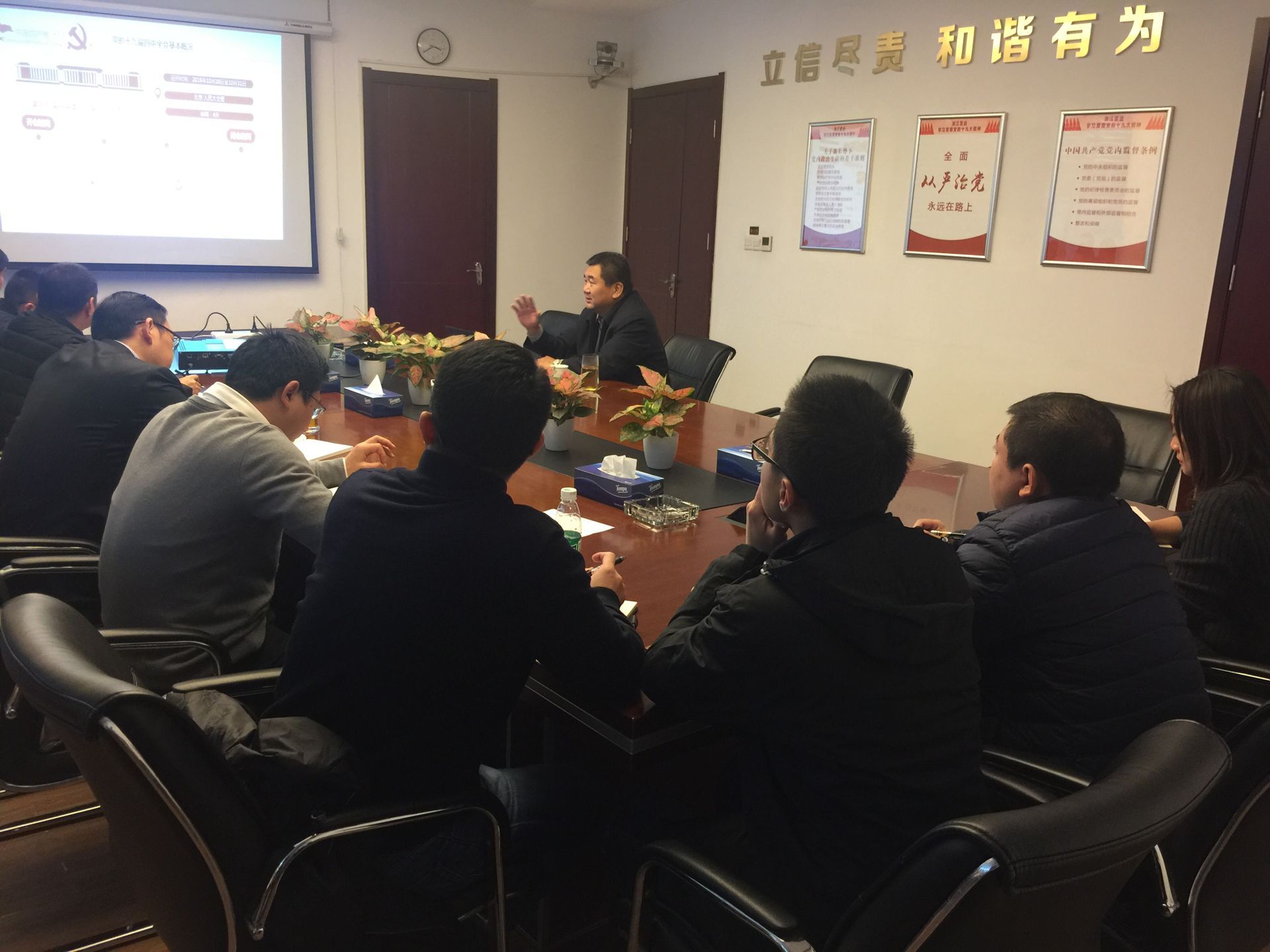 12月25日,清能集团党委副书记、总经理朱万奎到清江置业公司宣讲党的十九届四中全会精神。