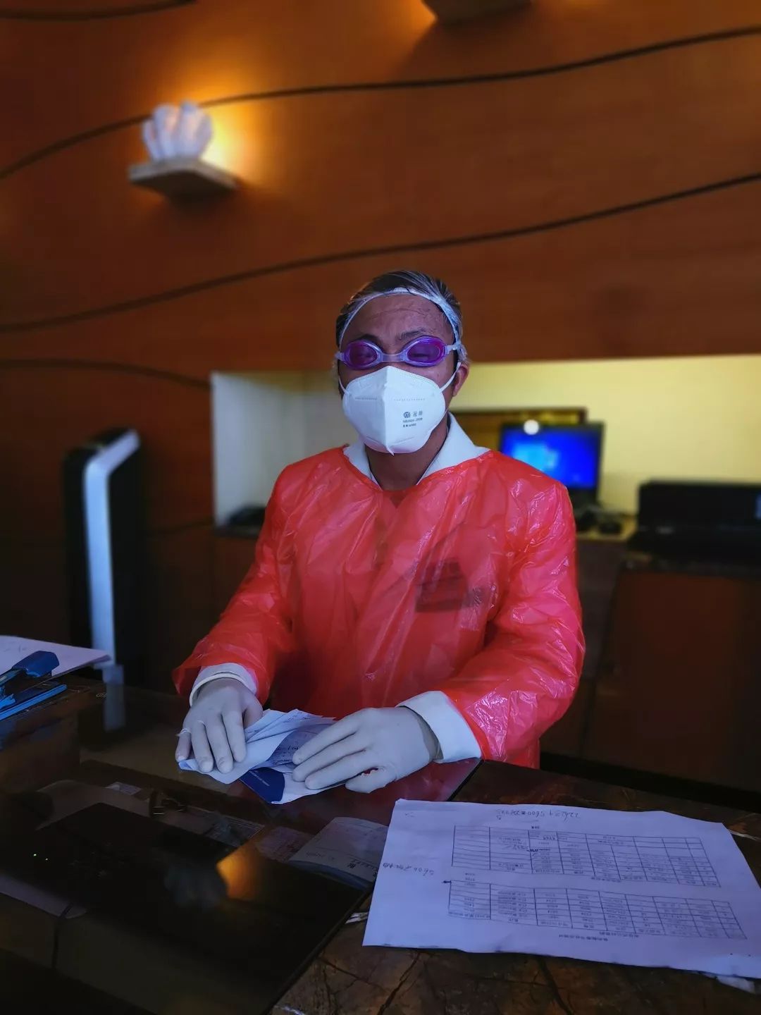 前台员工全副武装值守
