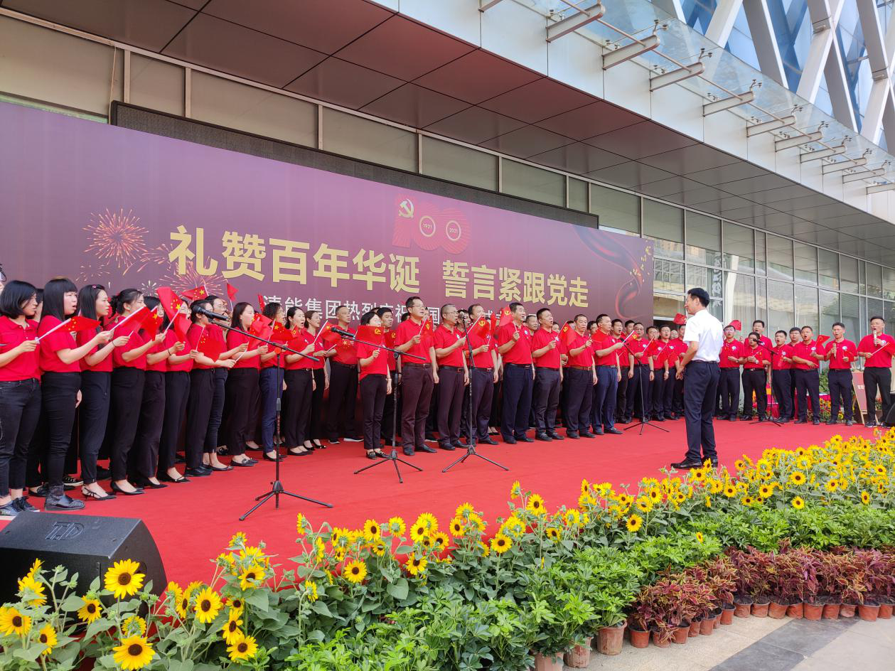 活动最后,集团党委班子成员,各总支、支部书记上台领唱,全体大合唱《没有共产党就没有新中国》。铿锵有力的时代之歌阵阵回响,淋漓尽致地展现出清能人永远跟党走的理想和信念,展现初心不改,奋进前行的昂扬姿态。