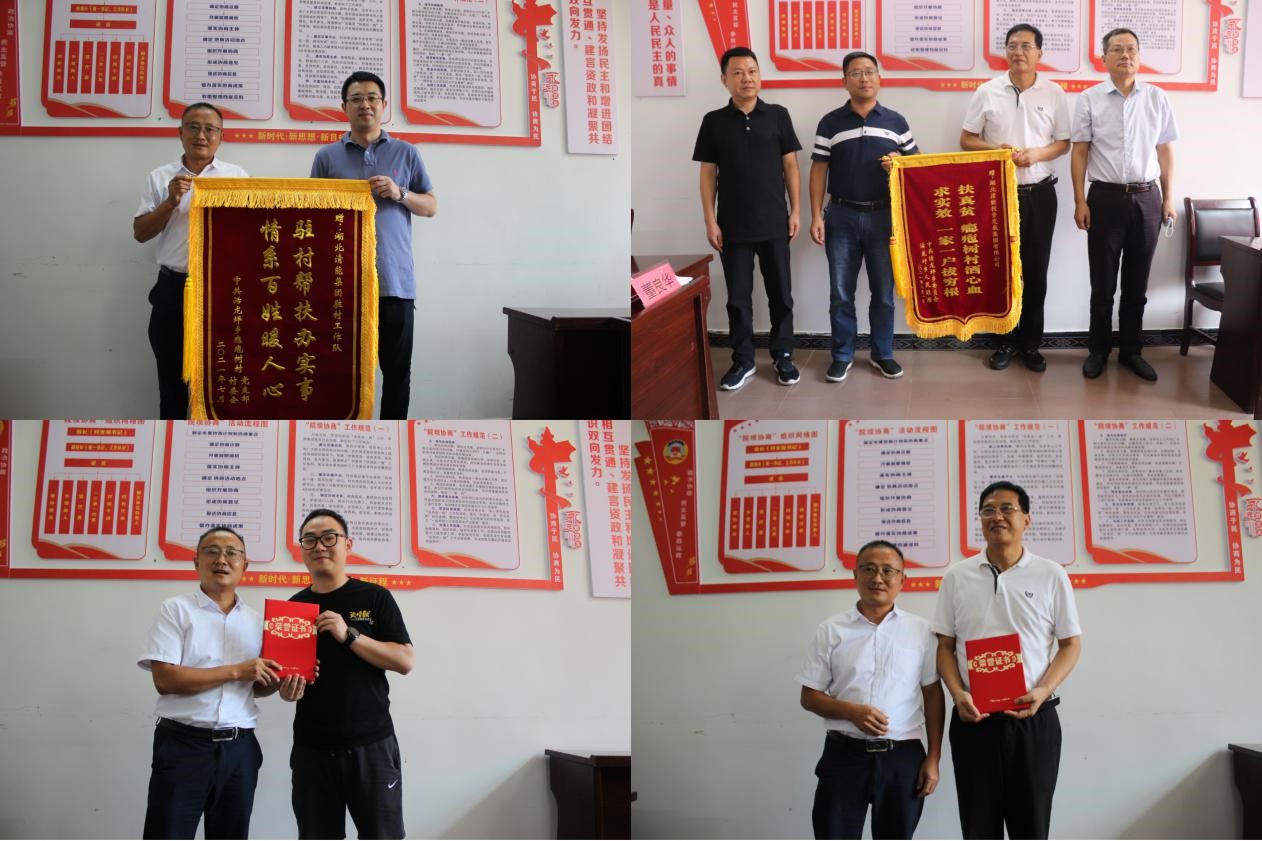 图:乡、村两委向清能集团授予锦旗、颁发荣誉证书